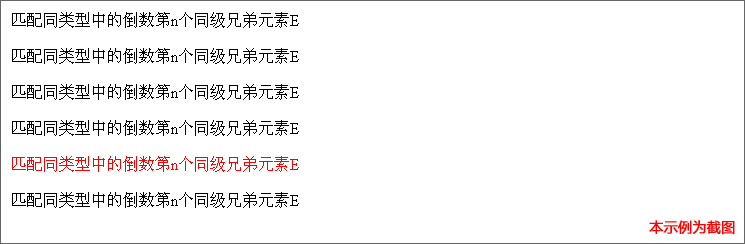 相关伪类: E:root | E:nth-child(n) | E:nth-last-child(n) | E:nth-of-type(n) | E:last-child | E:first-of-type | E:only-child | E:only-of-type | E:empty