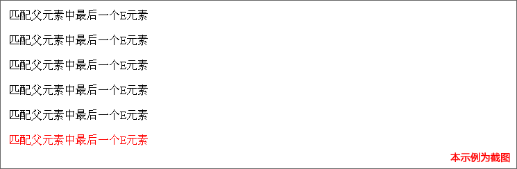 相关伪类: E:root | E:nth-child(n) | E:nth-last-child(n) | E:nth-of-type(n) | E:nth-last-of-type(n) | E:first-of-type | E:only-child | E:only-of-type | E:empty